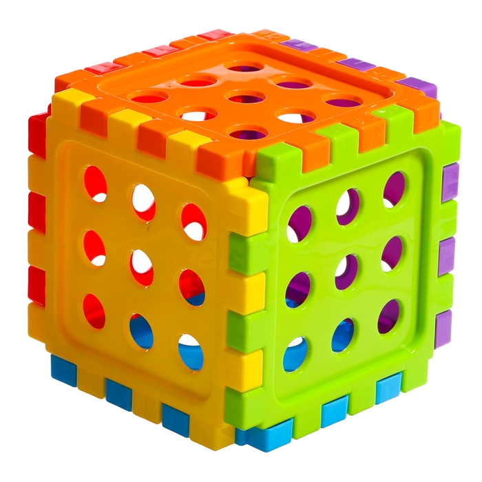 - Используйте кубик, как сортер, прикрепляя детали мозаики к стенкам куба и по цветам.