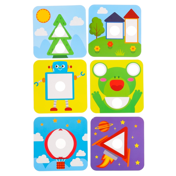 - Накладывайте картинки на основу, чтобы сделать игру интереснее. Дополняйте картинки мозаикой, подбирая её по форме. Учите геометрические фигуры, используя мозаику разной формы.