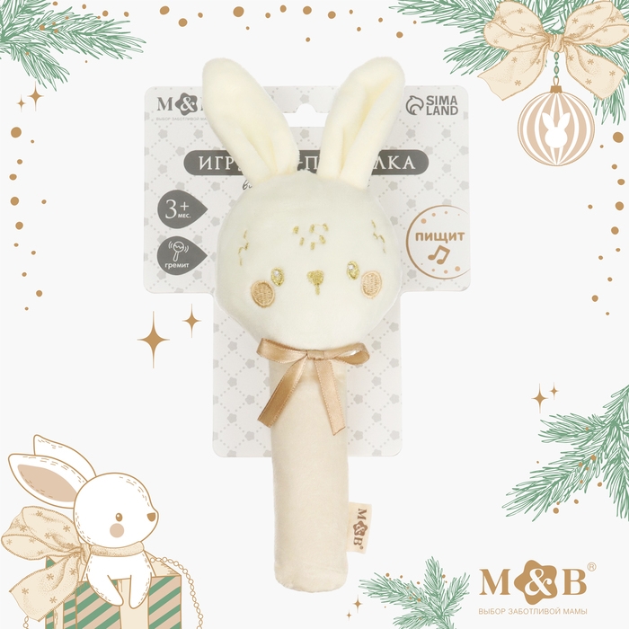 Игрушка - пищалка «Новогодний зайка», цвет бежевый