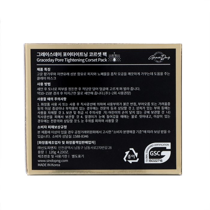 Для очищения и сужения пор специалисты Grace Day предлагают воспользоваться маской Pore Tightening Corset Pack. Средство рассчитано на особенности жирной и комбинированной кожи, оно за считанные минуты избавляет покровы от слоя отмерших клеток, излишков кожного сала и других загрязнений, включая те, что скопились глубоко в порах. Такой эффект освежает и выравнивает цвет лица, уменьшает заметность пор, предупреждает воспаления. После ухода кожа становится гладкой, мягкой, шелковистой. Формула маски включает натуральную глину, обладающую активными абсорбирующими свойствами, подтягивающую поры пудру из семян фасоли и карамель, экстракты центеллы и крапивы, нормализующие секрецию и стимулирующие восстановление тканей.