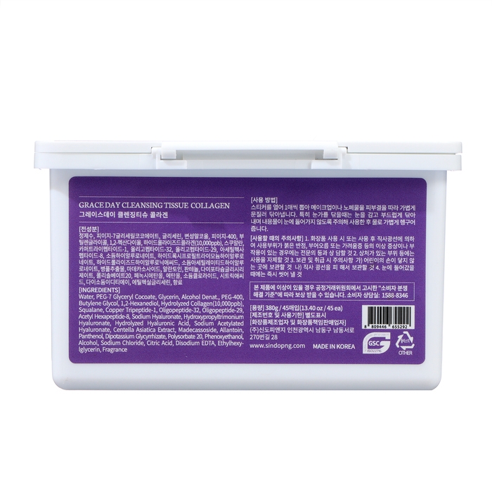 Салфетки очищающие Grace Day для снятия макияжа, с коллагеном, 45 шт