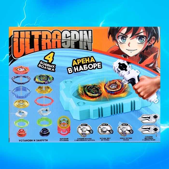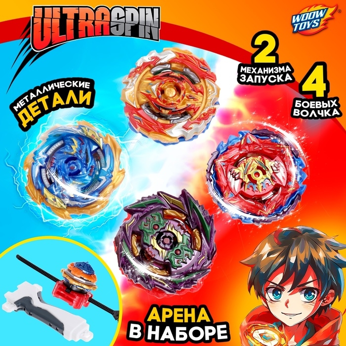 Набор боевых волчков ULTRA SPIN, 2 запуска, 4 волчка, 1 арена