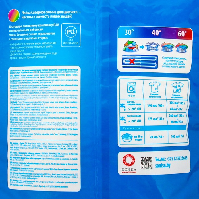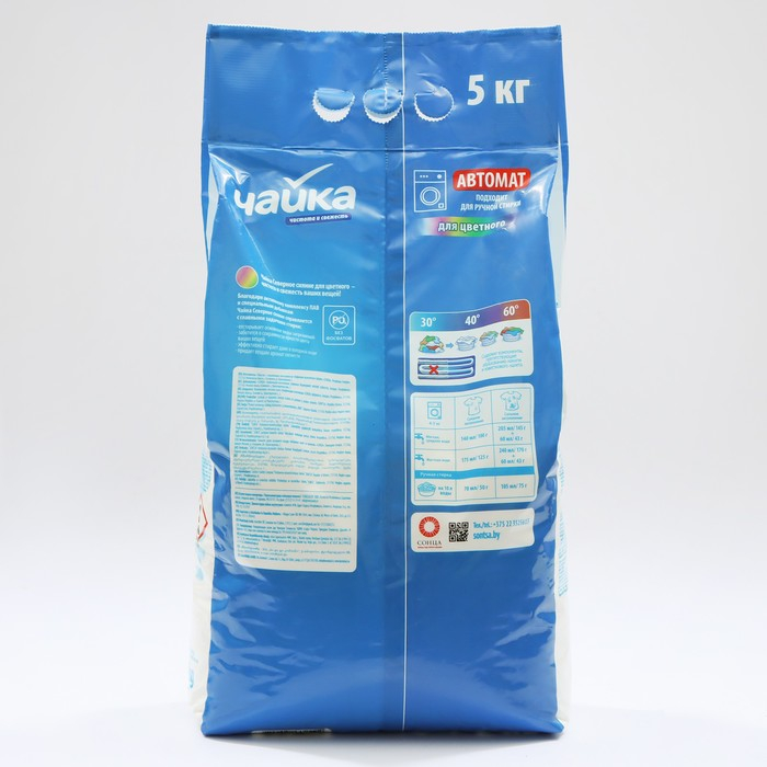 Порошок для стирки Чайка для автоматической стирки - специально создан для стирки цветного белья. Содержит компоненты, которые сохраняют яркость цветных тканей.
