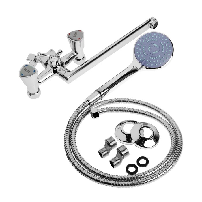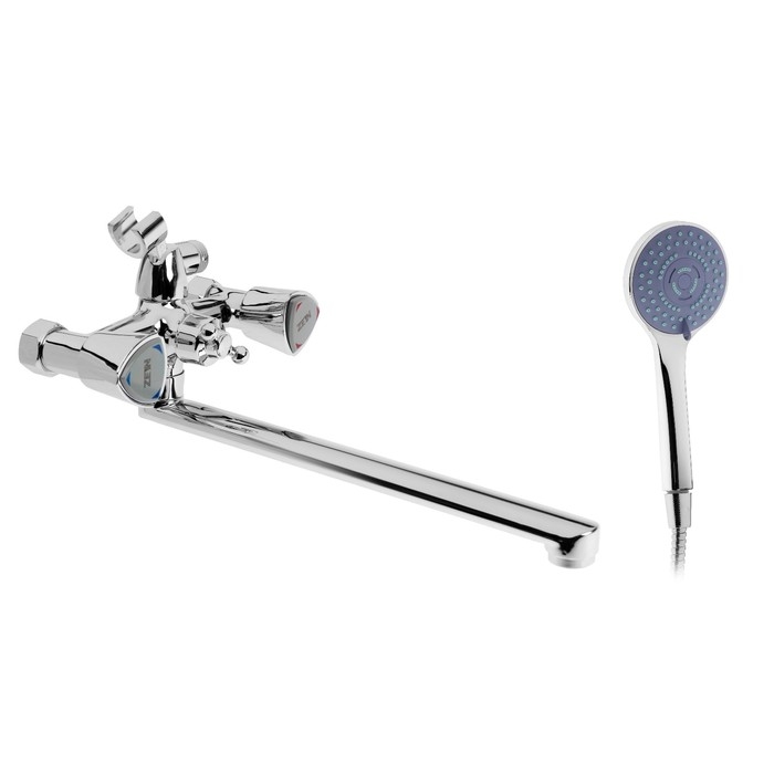 Смеситель для ванны ZEIN Z3726, двухвентильный, излив 30 см, лейка 3 режима, хром