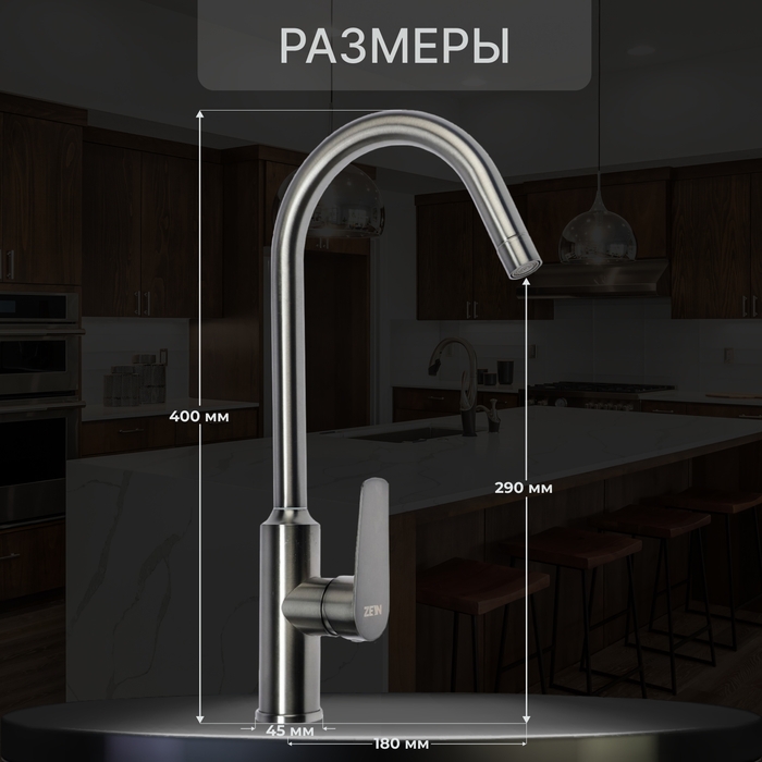 Смеситель для кухни ZEIN Z85, однорычажный, картридж керамика 40 мм, нержавеющая сталь, хром