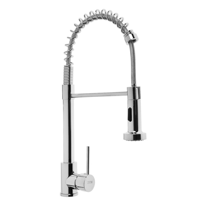 Смеситель для кухни ZEIN Z1300, однорычажный, выдвижной излив, латунь, цвет хром