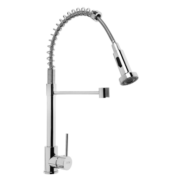 Смеситель для кухни ZEIN Z3824, однорычажный, гибкий излив на пружине, аэратор 2 режима,хром