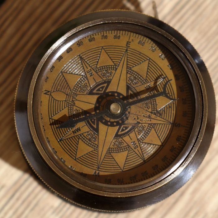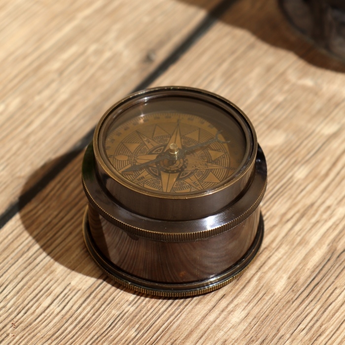 Компас с измерительной лентой 6х6х4,5 см, латунь