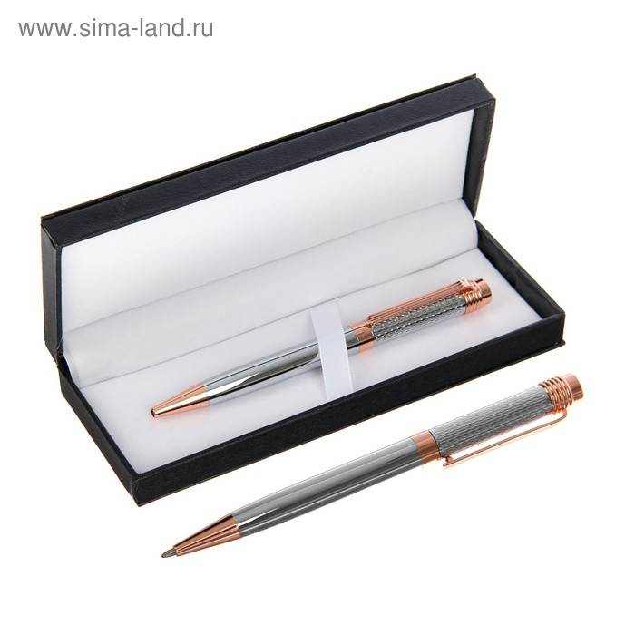 Ручка подарочная, шариковая, в кожзам футляре, поворотная, VIP корпус, серебряно-золотистый корпус