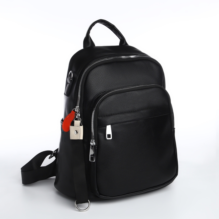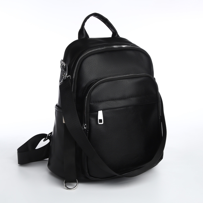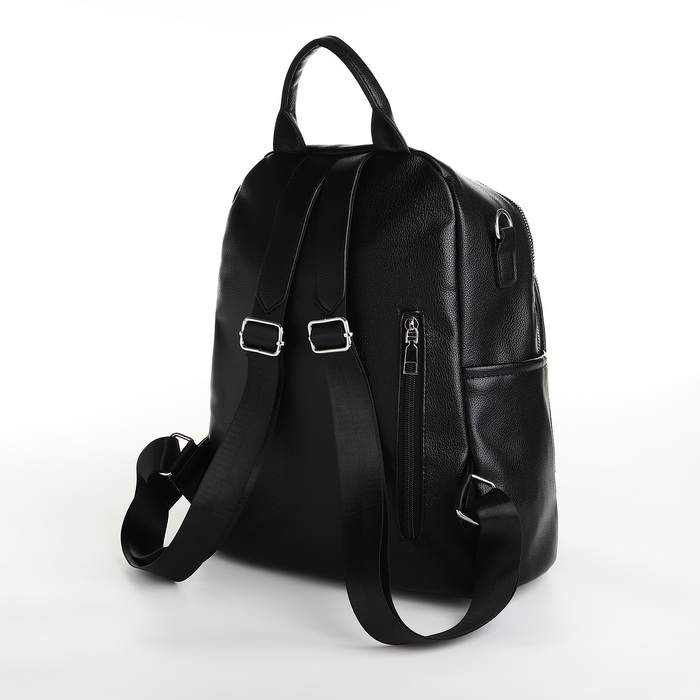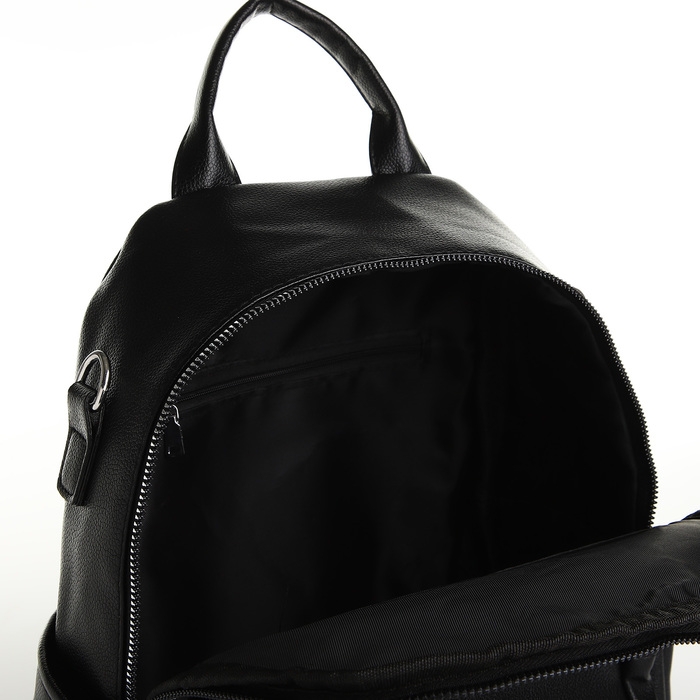 Рюкзак городской на молнии, из искусственной кожи, цвет чёрный