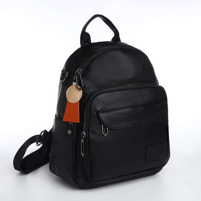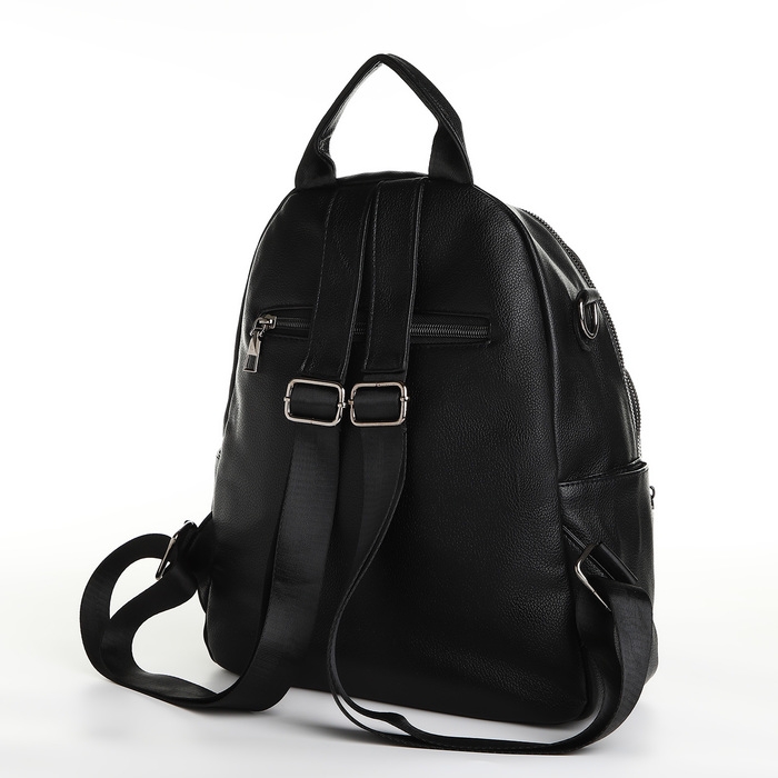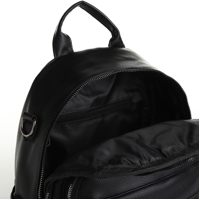 Рюкзак городской на молнии, из искусственной кожи, цвет чёрный