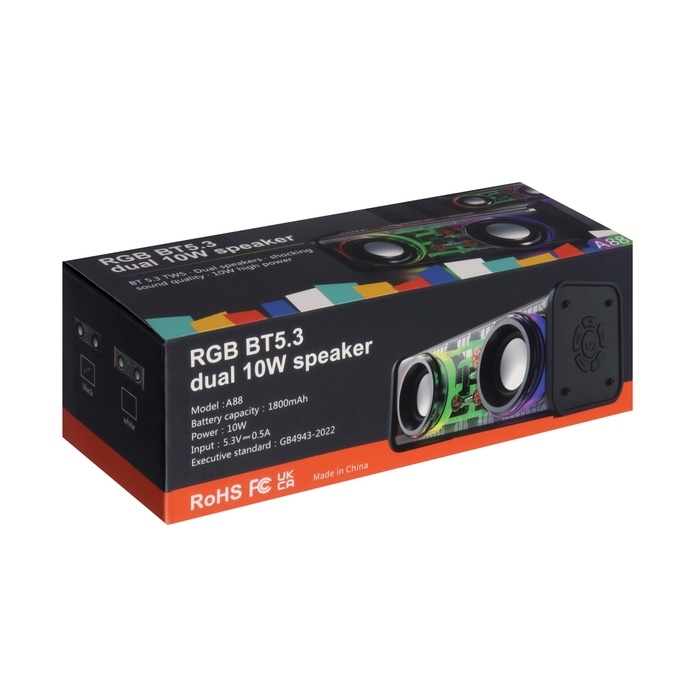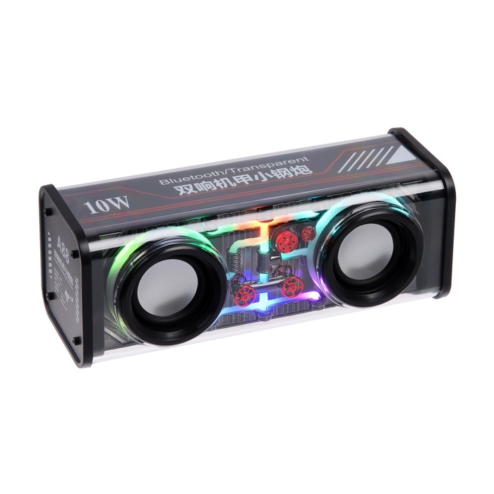 Портативная колонка А88, 10 Вт, прозрачная, подсветка, 1800 мАч, чёрная