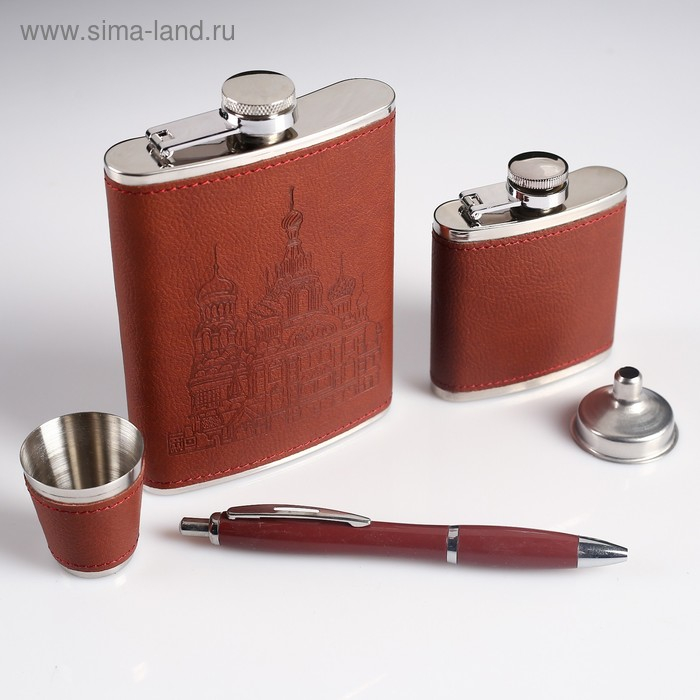 Набор "Собор" 5 в 1: фляжка 240 мл + фляжка 90 мл + рюмка + воронка + ручка