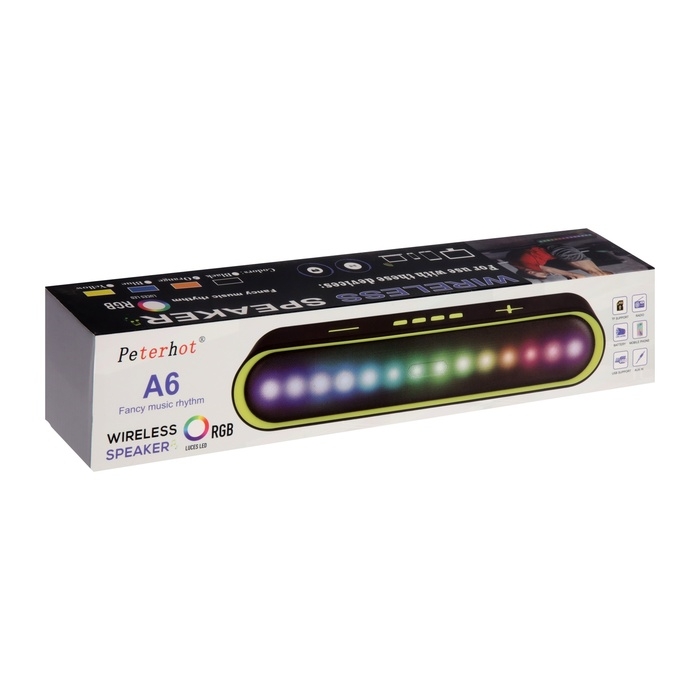 Портативная колонка A6, 10 Вт, 1200 мАч. BT5.0, подсветка, чёрно-оранжевая