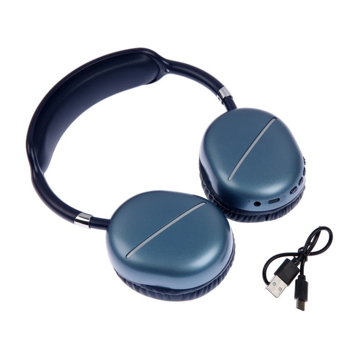 Наушники AKZ MAX10, беспроводные, полноразмерные, микрофон, подсветка, синие