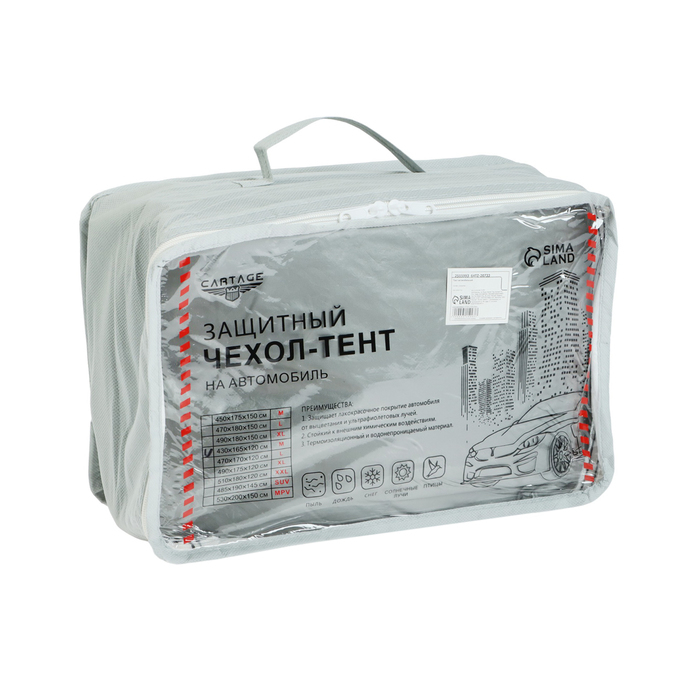 Тент автомобильный CARTAGE, водонепроницаемый, полиэстер М, 430×165×120 см