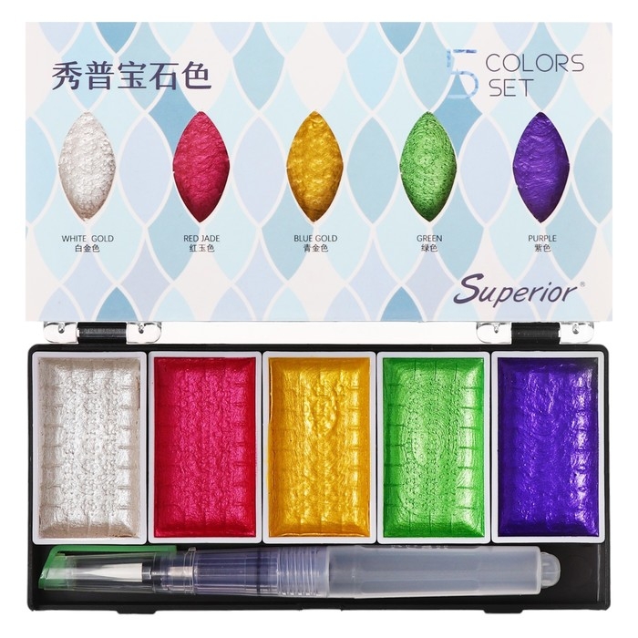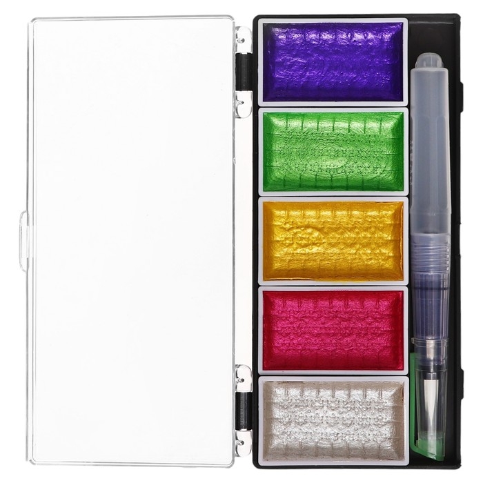 Краски акварельные, перламутровые, + кисть, в пластиковой коробке, 5 цветов