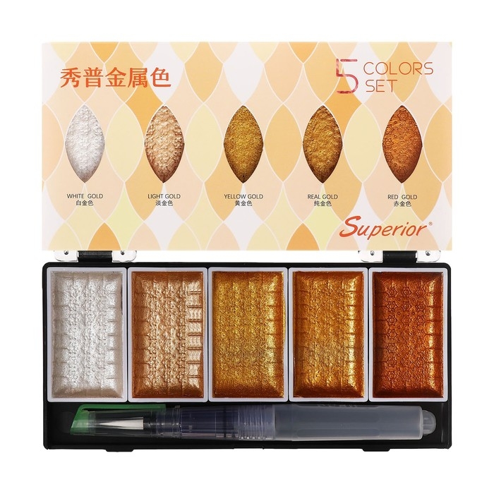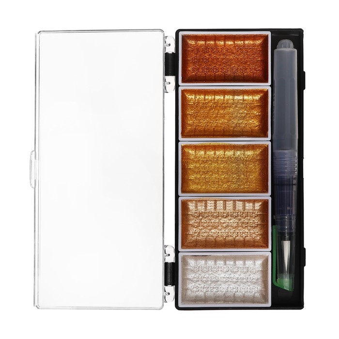 Краски акварельные, перламутровые, + кисть, в пластиковой коробке, 5 цветов