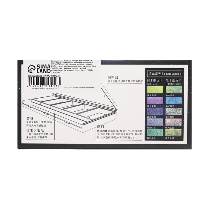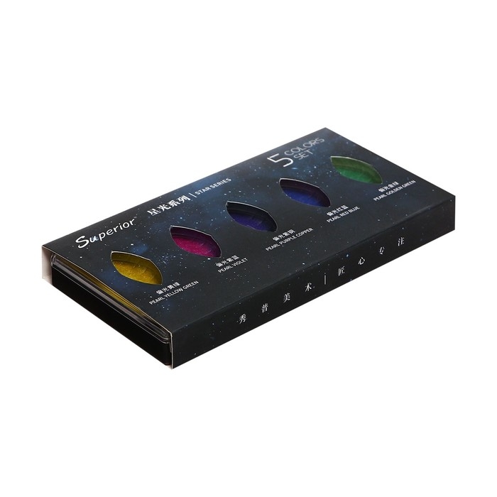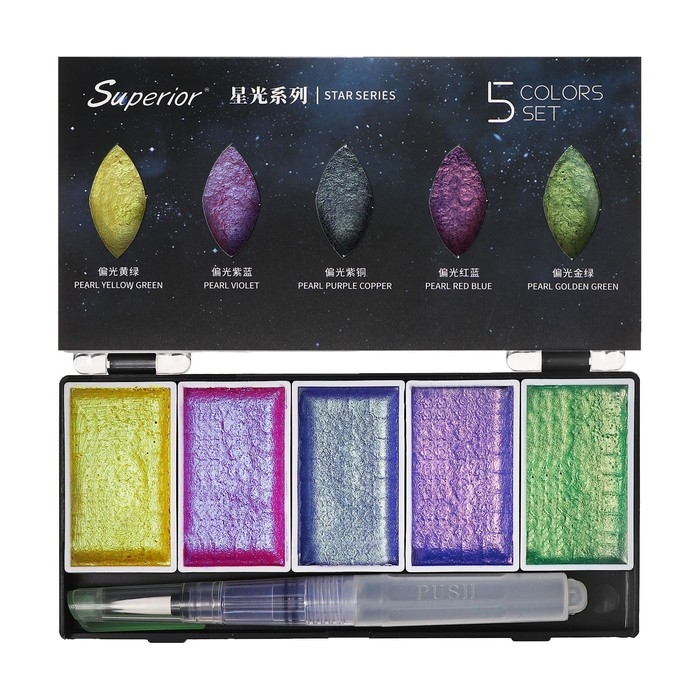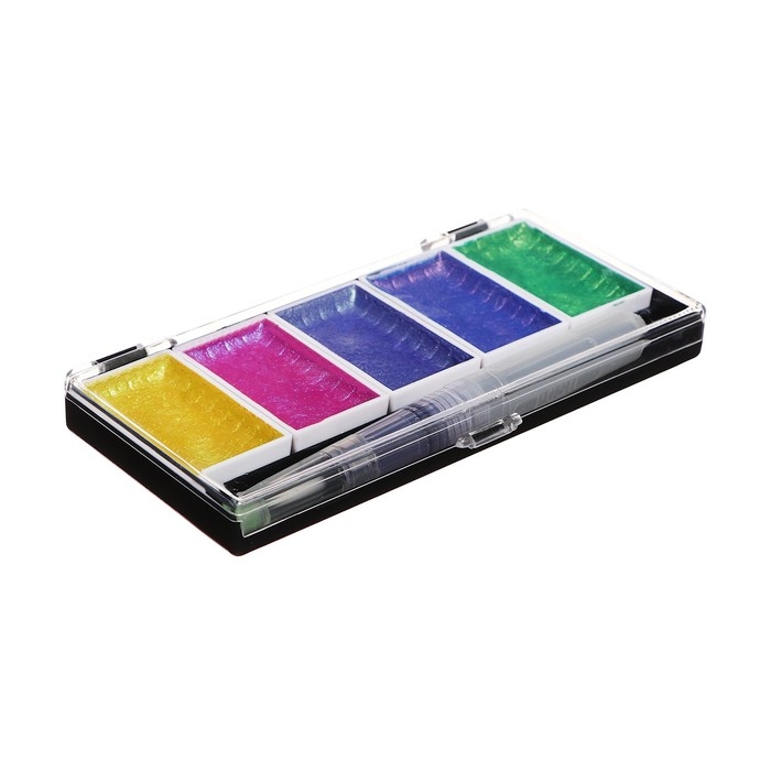 Краски акварельные, перламутровые, + кисть, в пластиковой коробке, 5 цветов