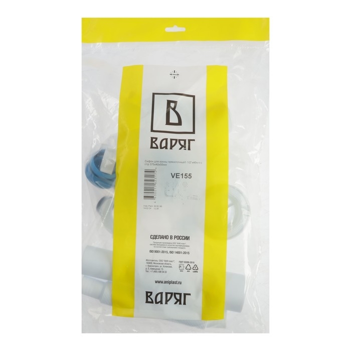 Сифон для ванны "АНИ Пласт" Варяг VE155, 1 1/2"х 40/50 мм, с переливом, с гофрой 40/50 мм
