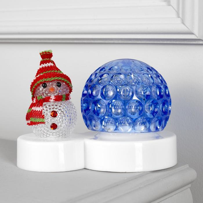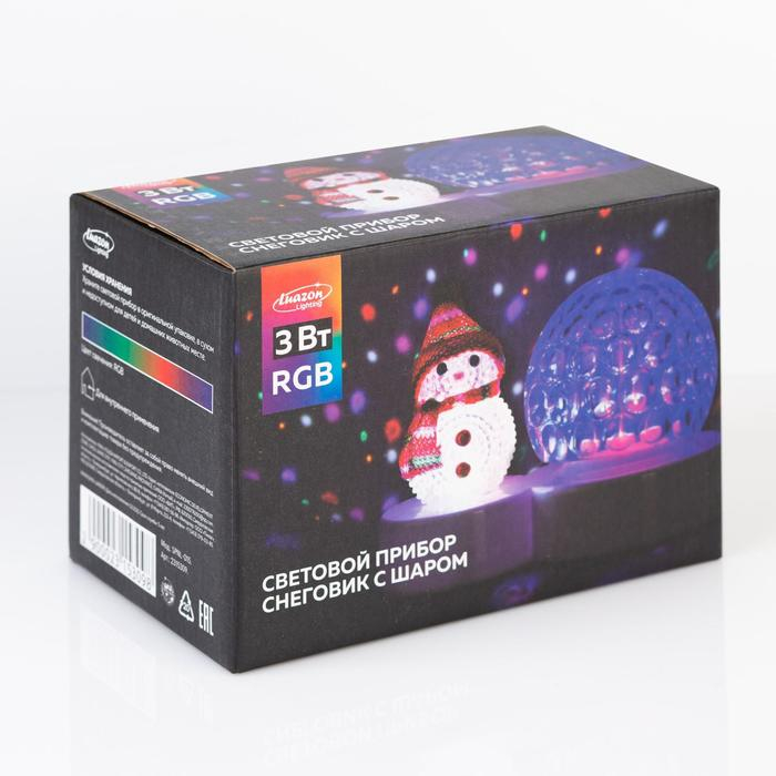 Световой прибор «Снеговик с синим шаром» 9.5 см, свечение мульти, 220 В