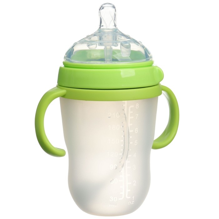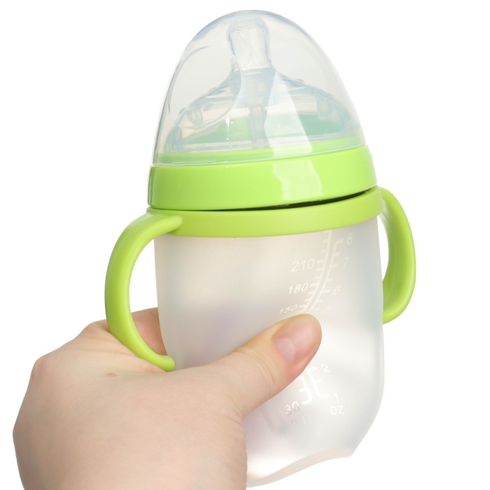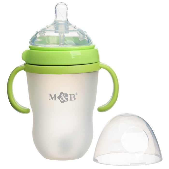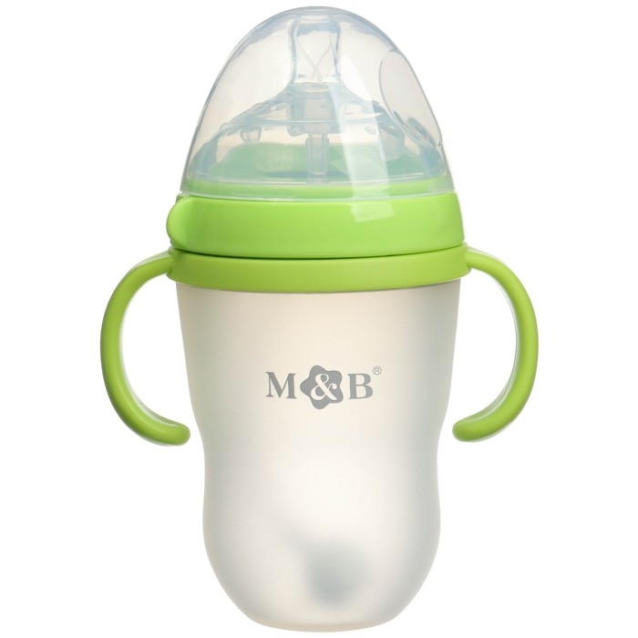 Бутылочка для кормления M&B, ШГ Ø70мм, от 6 мес, 250мл, с ручками, силиконовая колба, цвет зеленый