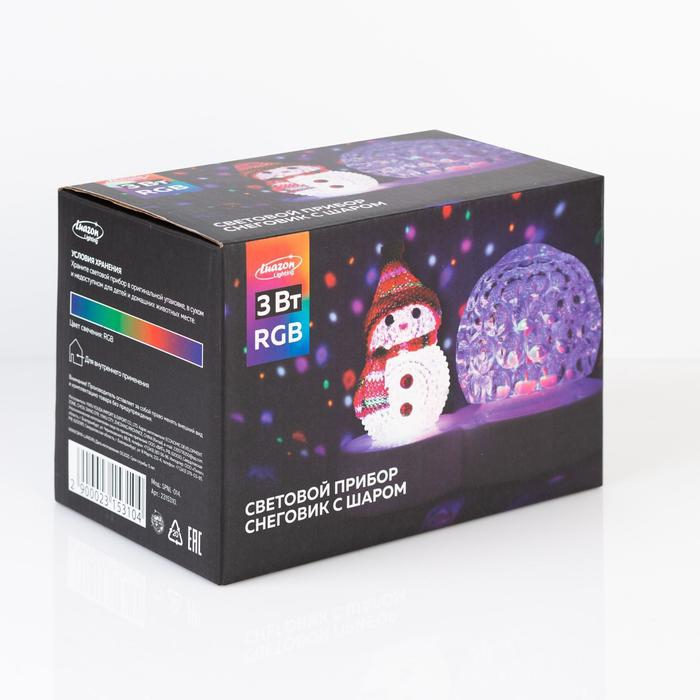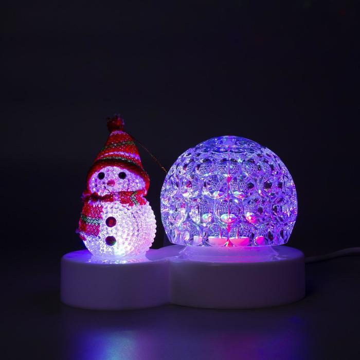 Световой прибор «Снеговик с прозрачным шаром» 9.5 см, свечение мульти, 220 В