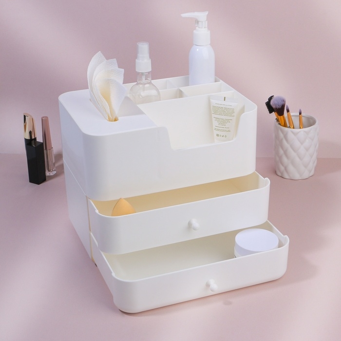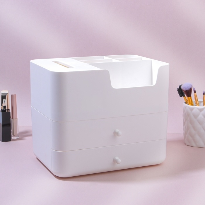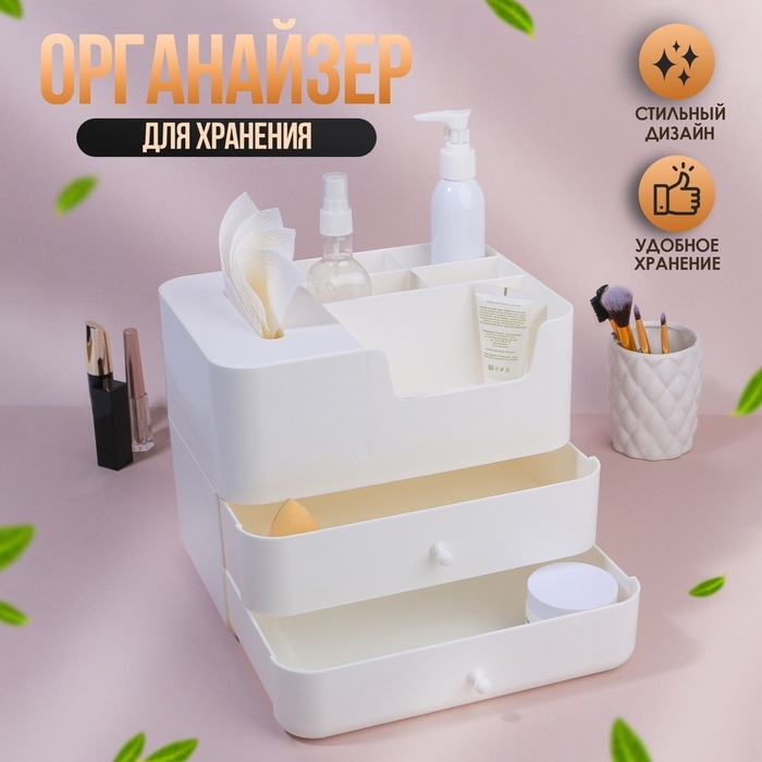 Органайзер для хранения, многоуровневый, 2 ящика, 26 × 20,7 × 21,8 см, цвет белый