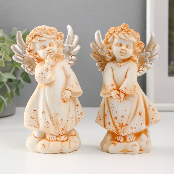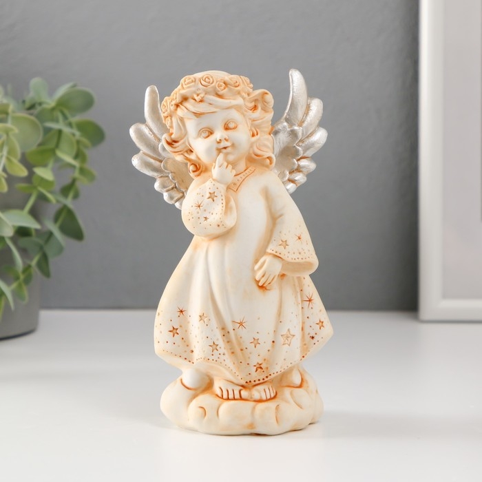 Сувенир полистоун "Ангел в звёздном платье и венке с серебристыми крыльями" МИКС 15,3 см