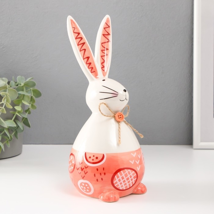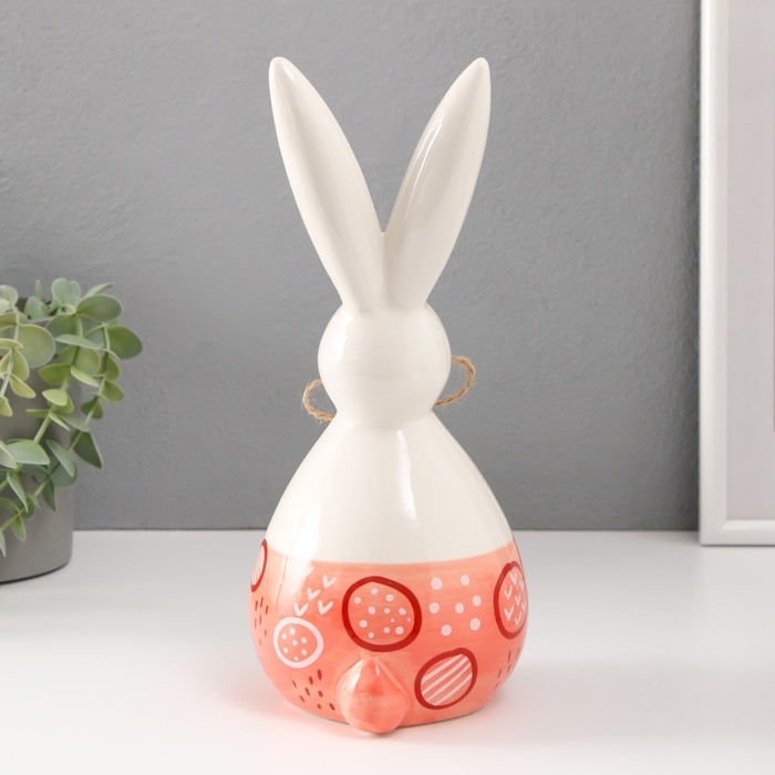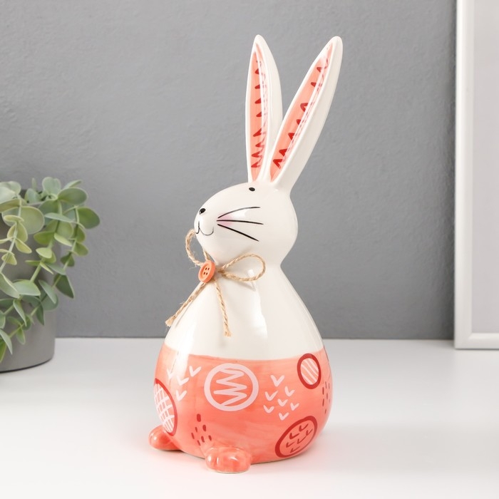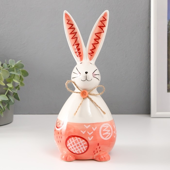 Сувенир керамика "Кролик сонный с бантиком" бело-персиковый 11,8х10,5х24,2 см