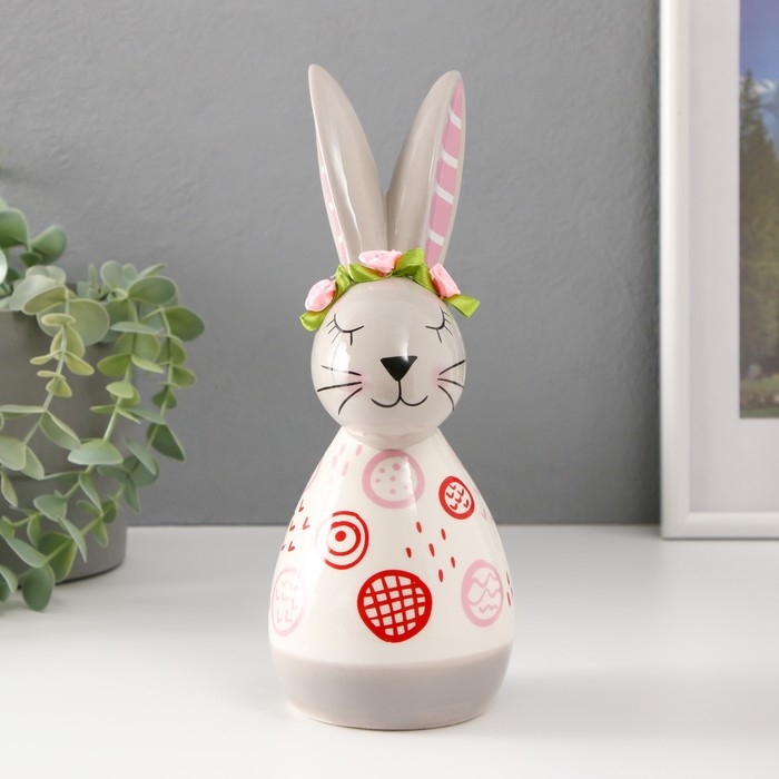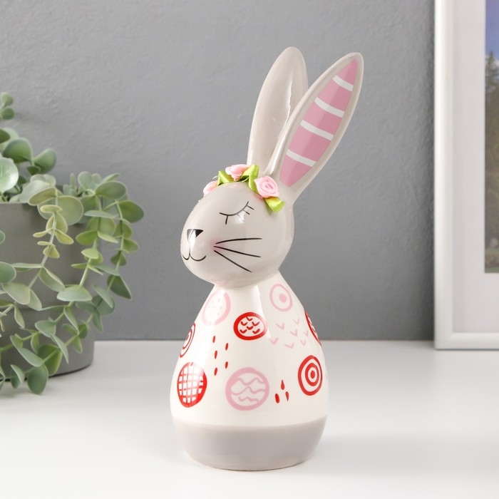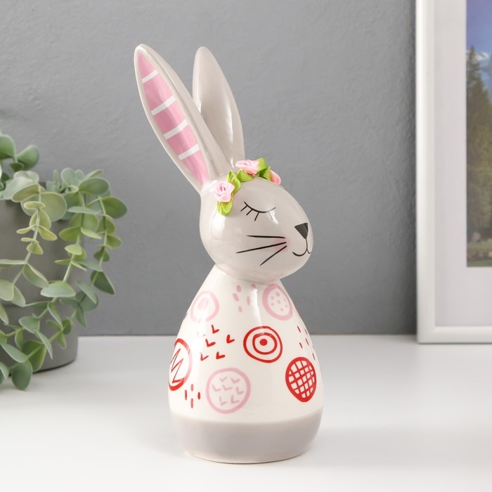 Сувенир керамика "Кролик спящий. Каракули" бело-серый с красными рисунками 10,5х8,7х22,7 см 986686
