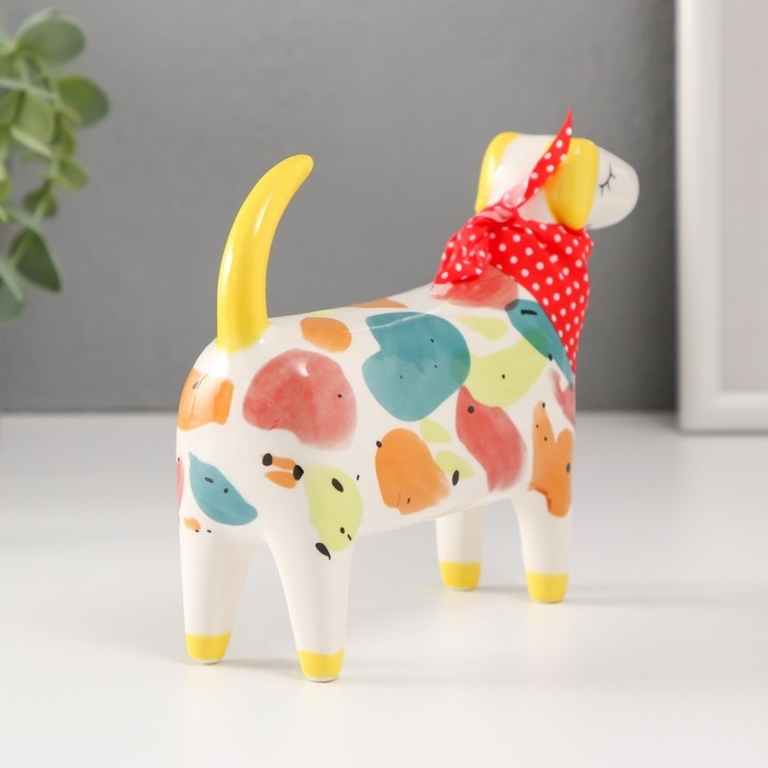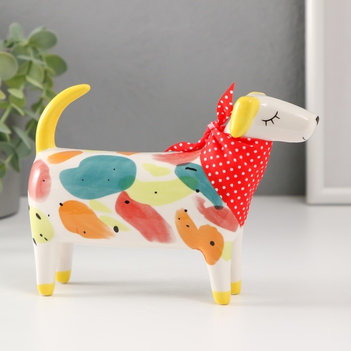 Сувенир керамика "Пёсик с косынкой" разноцветные пятна 16,7х5х11,8 см