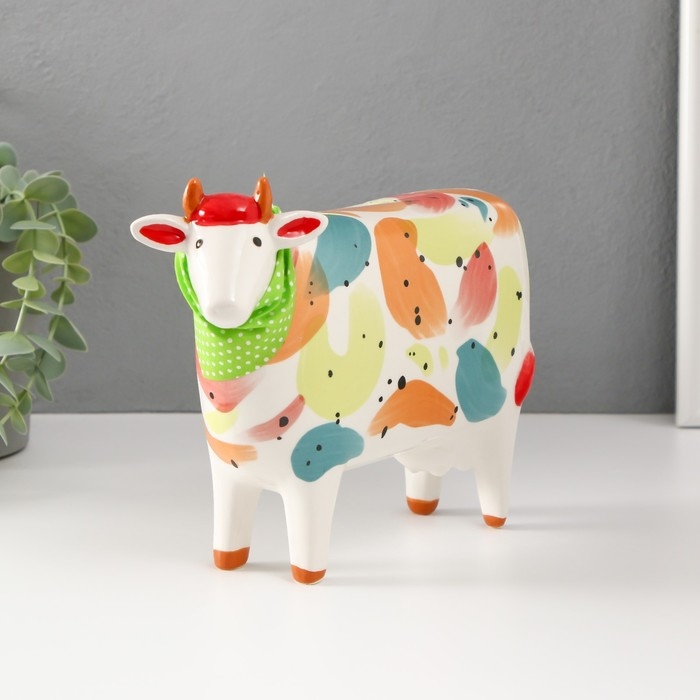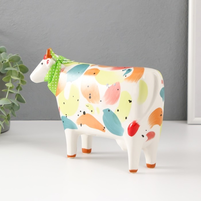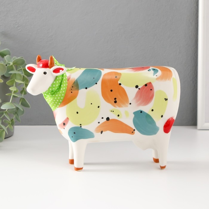 Сувенир керамика "Корова с косынкой" разноцветные пятна 21,8х8х15,8 см