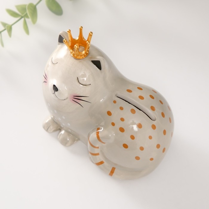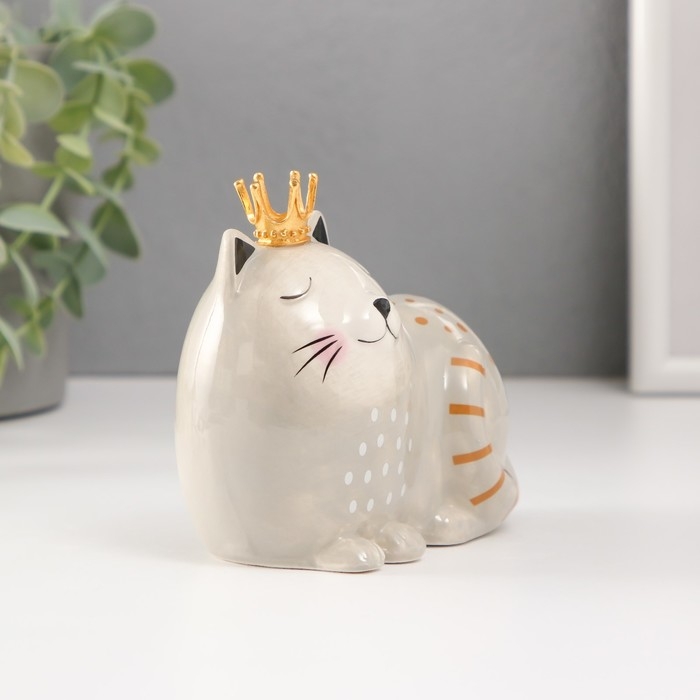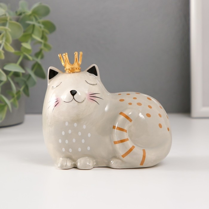 Копилка керамика "Спящая серая кошка в короне" 11,6х7,4х10,3 см