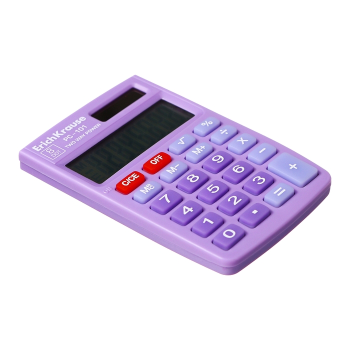 Карманный калькулятор в пластиковом корпусе с 8-разрядным ЖК - дисплеем. Имеет одноуровневую память. Оптимальный набор вычислительных функций позволяет совершать основные математические операции, рассчитывать проценты, извлекать квадратный корень и запоминать промежуточный результат. Для экономии энергии предусмотрены два источника питания: солнечная и алкалиновая батареи, а также функция автоматического выключения. Для защиты от загрязнений, повреждений и случайного включения в комплекте предусмотрена PVC обложка.