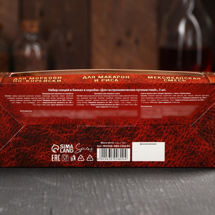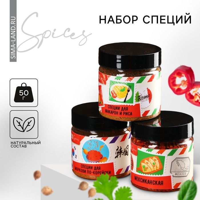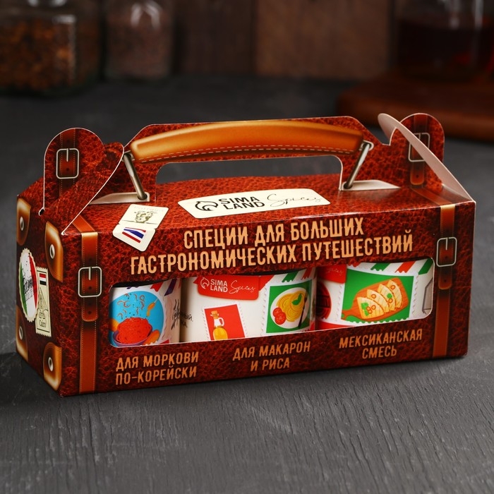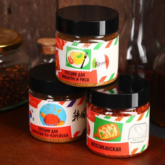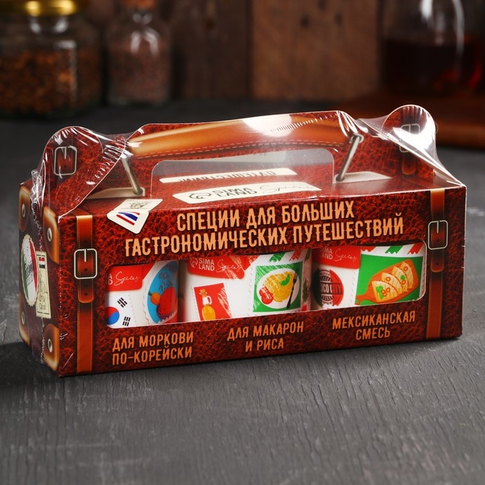 Набор специй «Для гастрономических путешествий»: специи для макарон и риса, морковь по-корейски, мексиканская, 3 шт. х 100 г.
