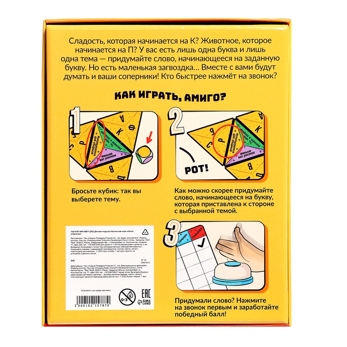 Настольная игра имеет сертификат ЕАС. Товар прошёл все необходимые проверки и соответствует требованиям безопасности. Рекомендован для детей от 7 лет.