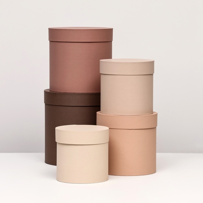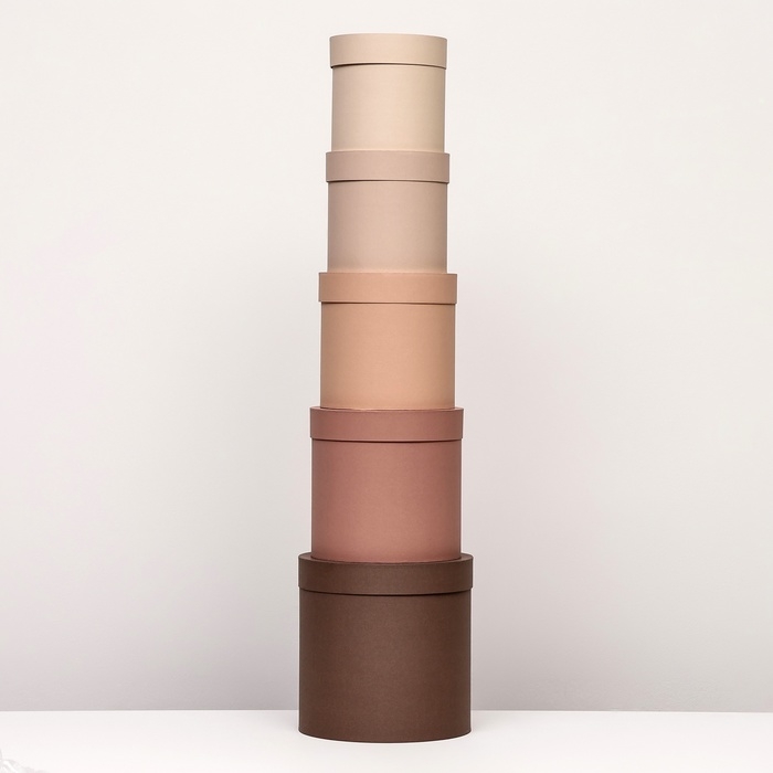 Набор шляпных коробок 5 в 1, коричневый, 23 х 23-15 х 15 см