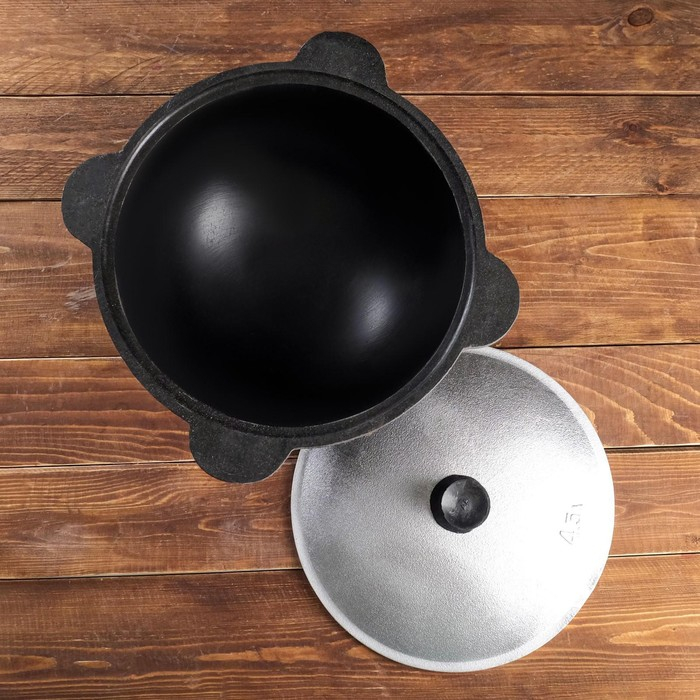 Казан чугунный, 4,5 л, плоское дно, алюминиевая крышка