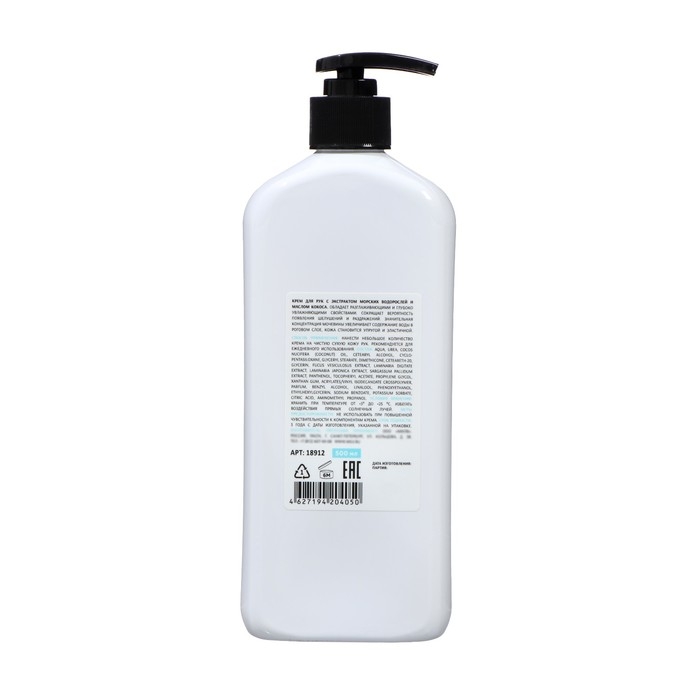 Крем для рук MILV с экстрактом морских водорослей и маслом кокоса, 500 мл