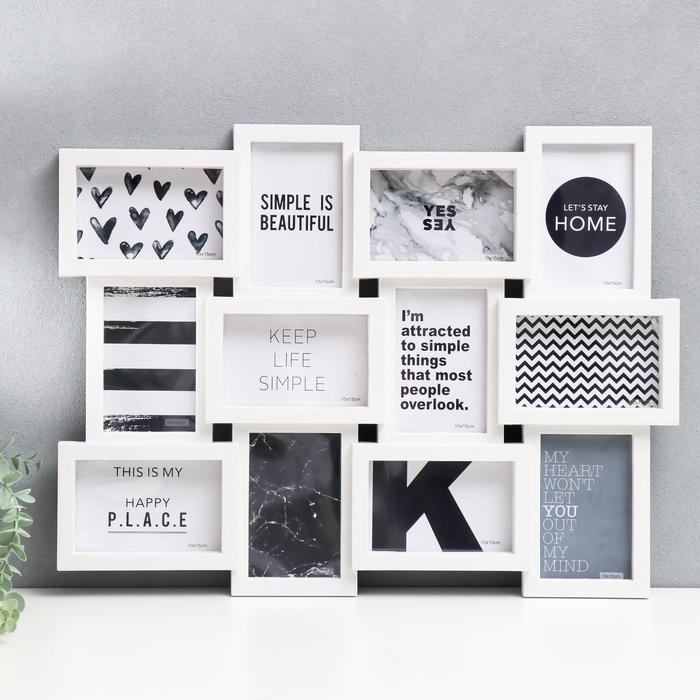 Фоторамка пластик на 12 фото 10х15 см "Мелкий горошек" белая 43,5х57 см