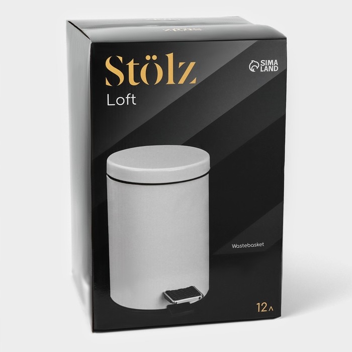 Ведро мусорное с педалью Stölz, 12 л, нержавеющая сталь, цвет белый