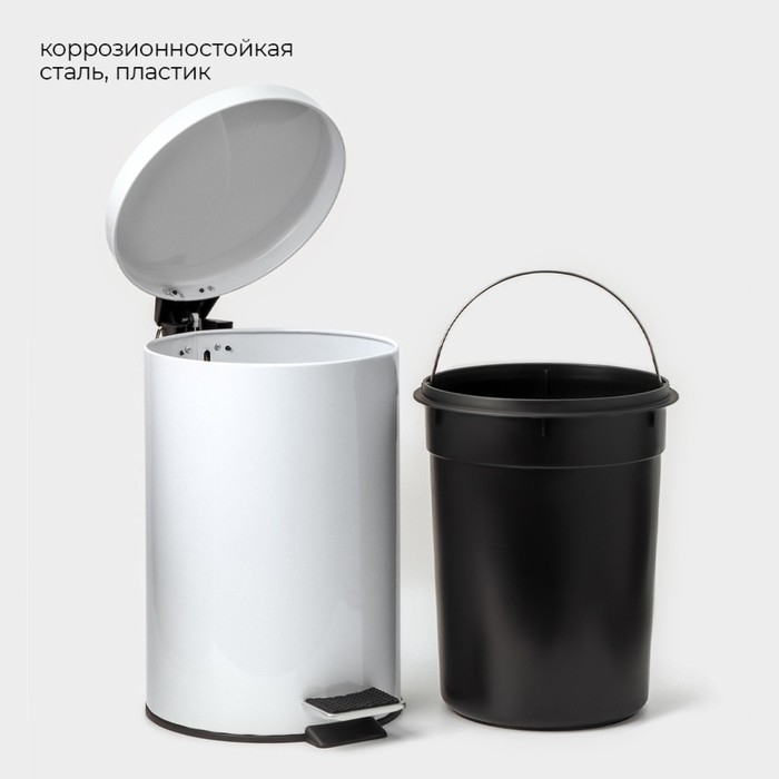 - Эргономичный дизайн: цилиндрическая форма и белый цвет позволяют ведру вписаться в любой интерьер, будь то кухня, ванная комната или офис.