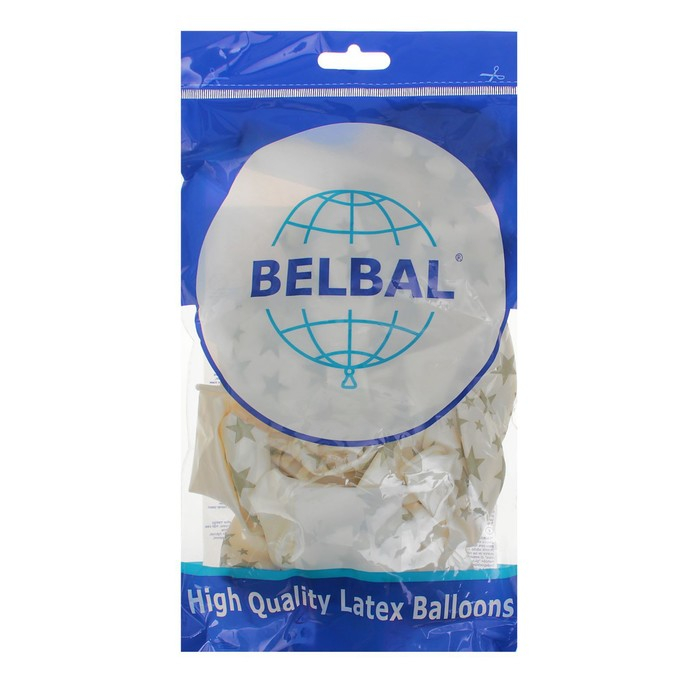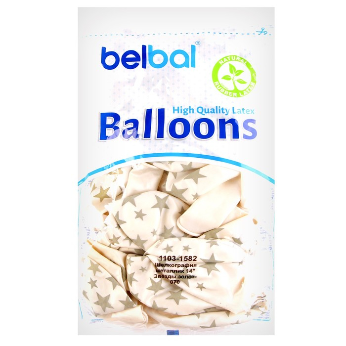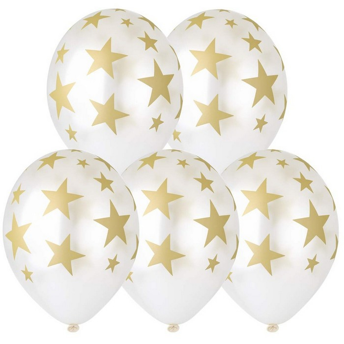 Шар латексный 14" «Золотые звёзды», кристалл, шелкография, набор 25 шт., цвет перламутр