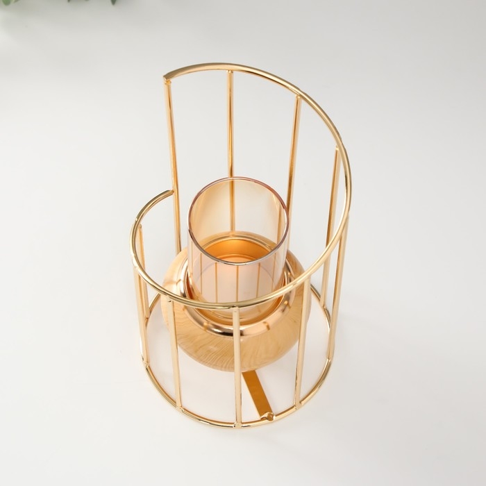 Подсвечник металл, стекло на 1 свечу "Лестница. Эко" d= 5 см золото 10х10х20 см