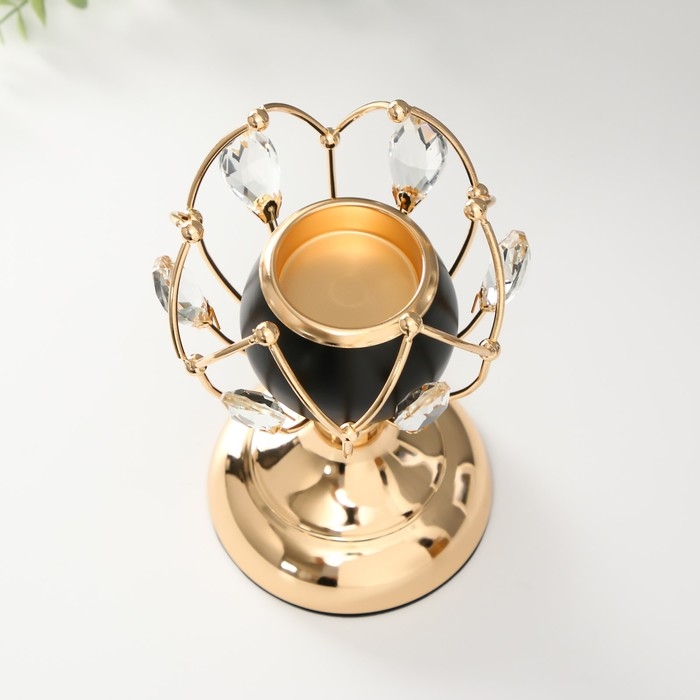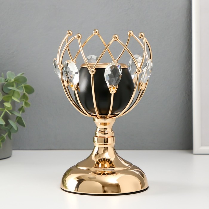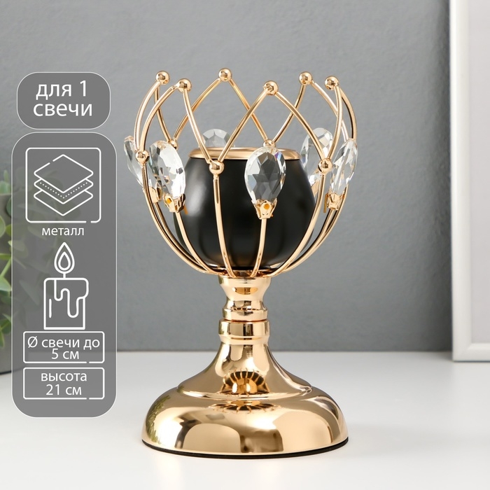 Подсвечник металл, стекло на 1 свечу "Чёрный бутон" d=5 см золото 12х12х21 см