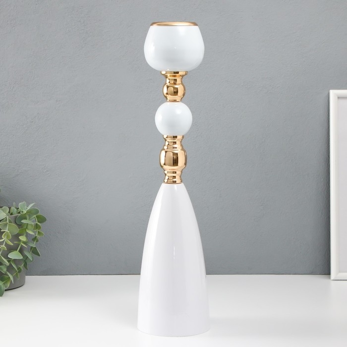 Подсвечник металл на 1 свечу "Белая лагуна" d=5 см золото 10х10х41 см