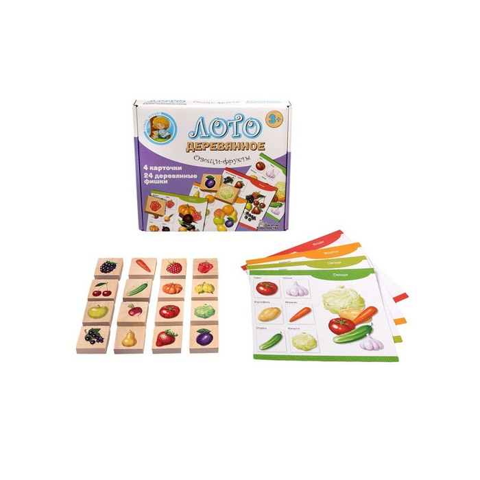 - Деревянные фишки с картинками фруктов, овощей и ягод — 24 шт.