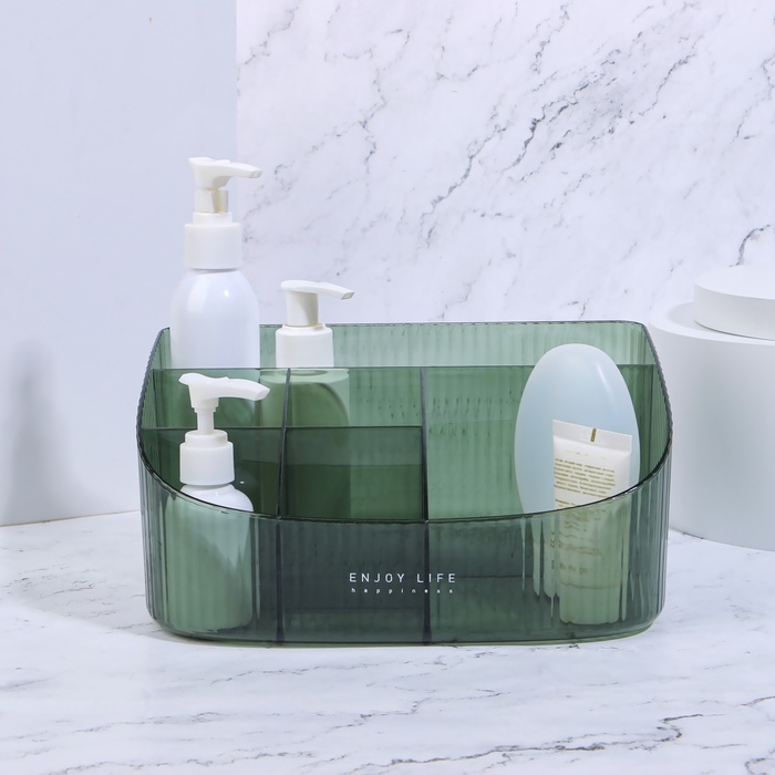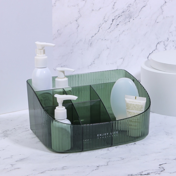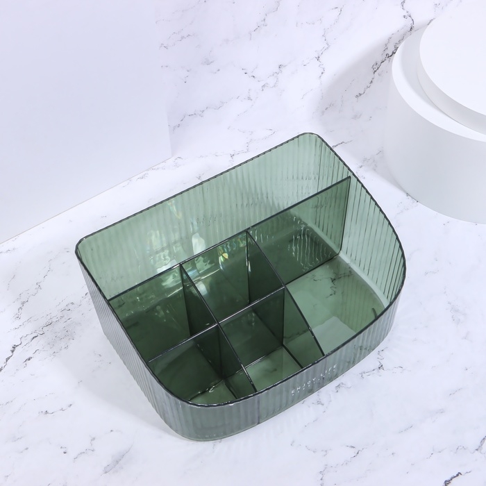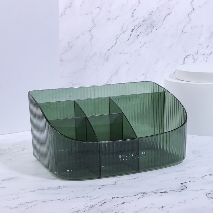 Органайзер для хранения косметических принадлежностей «GREEN», 6 секций, 23 × 15,5 × 11 см, цвет полупрозрачный/зелёный