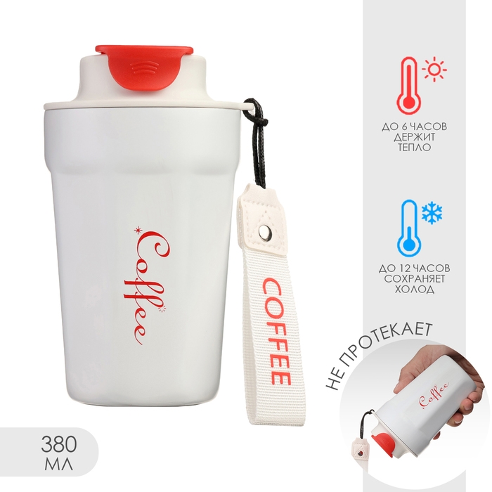 Термокружка, 380 мл, Coffee "Мастер К", сохраняет тепло до 6 ч, белая